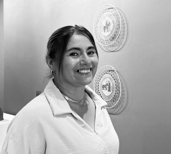 creyendo en el trabajo paciente y minucioso demandado por cada una de las técnicas y apoyamos la materia natural: el barro del río Paraná, el algodón del encaje y las telas de tapicería. Además, elegimos artistas que interrogan desde su sensibilidad y espiritualidad a una sociedad acechada y dominada por el consumo. Richar nació en el pueblo de Itatí, centro de peregrinaje de la provincia de Corrientes. La figura de la Virgen es parte de su ser y fortalece la devoción mariana mientras rescata una antigua técnica guaraní de rollizo superpuesto con barro del río Paraná. En la ciudad de Monteros, Marcela Sueldo continúa la tradición del tejido de encaje conocido como randa, que data de tiempos de la colonia. Los hilos delicados de algodón se entrelazan en intrincados diseños geométricos o en las imágenes realizadas especialmente para acompañar la figura de la Virgen de Itatí, la de Luján (ambas del siglo XVIII) y a Mama Antula (1730-1799). En tanto, para Xil Buffone, quien creció en Rosario también a orillas del Paraná, no hay diferencia entre orar y pintar. Así lo hace con la representación de la argentina Mama Antula, canonizada en 2024. Comenzamos la muestra en el mes de diciembre cuando se festeja el día de la Virgen y culminamos en marzo, el mes de la mujer. Al respecto, dice Gabriela Campo: “Estamos articulando tres miradas sobre la espiritualidad y la sacralidad con tres técnicas diferentes. En sus obras, nuestros artistas humanizan a vírgenes y santas, las bajan del cielo a la tierra y las celebramos desde la maternidad en diciembre (Navidad), la Pachamama en febrero (Madre tierra) y la mujer luchadora por su identidad y sus derechos, en marzo.” Tres rostros femeninos de lo sagrado con la cercanía que es capaz de lograr el arte.